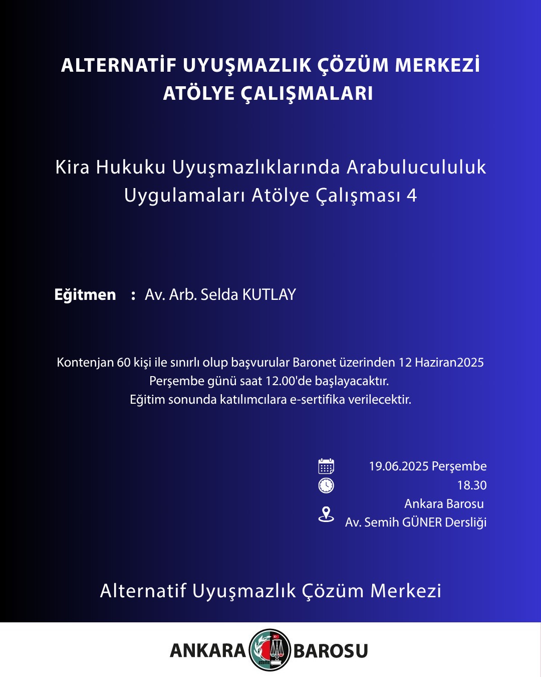 19.06.2025 18.30-20.30 saatleri, arasında ABEM Av. Semih GÜNER Dersliği